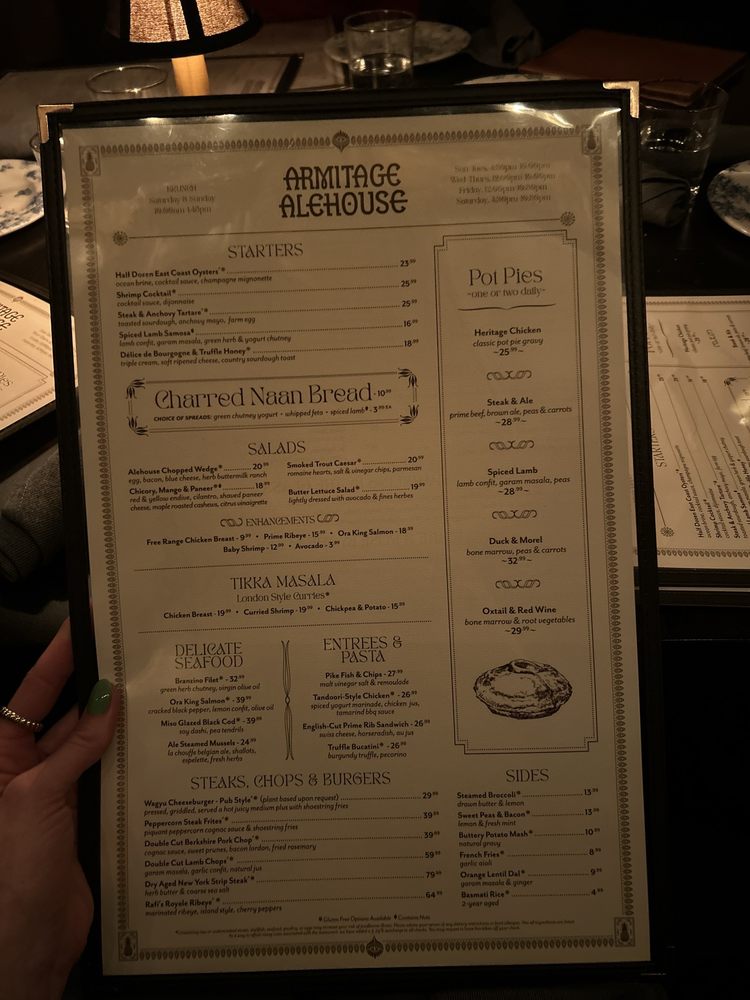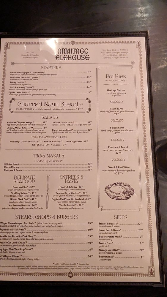 Armitage Alehouse in Chicago offers a unique fusion of British and Indian cuisine in a trendy, intimate setting. Known for its upscale atmosphere, diverse menu selection, and excellent service, this pub-style restaurant caters to a variety of tastes. From juicy burgers to flavorful seafood dishes, patrons can enjoy a range of options that are sure to satisfy. Standout dishes include the spiced lamb samosas, chicken tikka masala, and the sticky date cake dessert. The establishment also offers a wide array of amenities such as valet parking, outdoor seating, and a full bar. Overall, Armitage Alehouse provides a memorable dining experience that combines classic flavors with a modern twist.